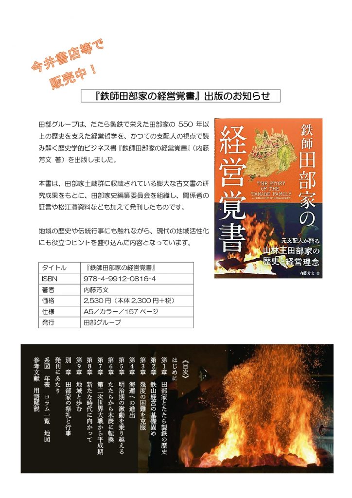 このたび田部グループは、たたら製鉄で栄えた田部家の550年以上の歴史を支えた経営哲学を、